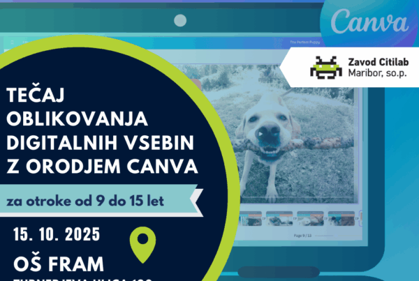 Bi radi, da vaš otrok odkrije svet digitalnega ustvarjanja in razvije svojo ustvarjalnost? Vabimo vas, da ga vključite v inovativen tečaj oblikovanja vsebin s Canvo in montaže videoposnetkov, posebej prilagojen…