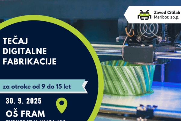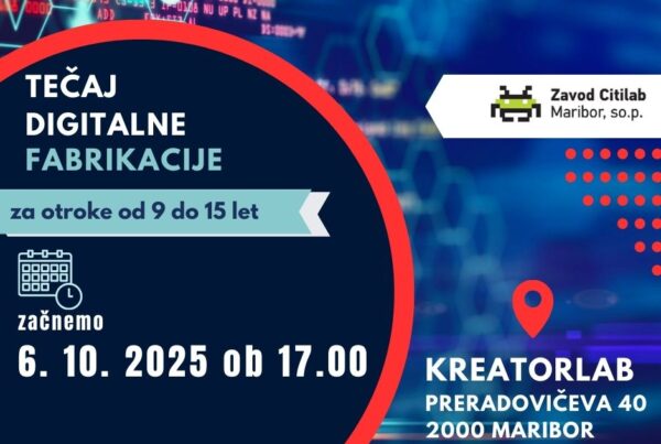 Obveščamo vas, da pričenjamo zbirati prijave za brezplačne delavnice digitalne fabrikacije za osnovnošolce, srednješolce in mladostnike. 22 urni tečaj bo vključeval spoznavanje programske opreme (Cura, RDWorks, Tinkercad, Silhouette Studio, Inkscape…