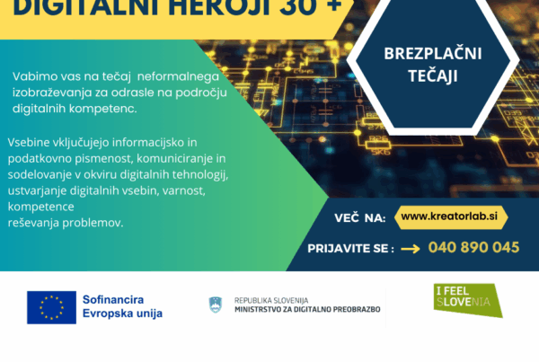 Zavod CITILAB Maribor in mreža partnerjev napovedujemo Osnovno/Napredno (O/N) izvedbo digitalnih usposabljanj z naslovom DIGITALNI HEROJI 30++ Izobraževalni program DH30++ je namenjeni starejšim od 30 let in ponuja paleto tematskih sklopov…
